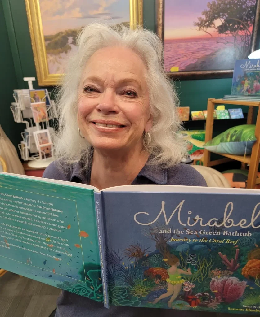 Mirabelle and the Sea Green Bathtub is a poetic, beautifully illustrated children’s book about the coral reef, featuring a young girl named Mirabelle who discovers a magical underwater world beneath her own bathtub. With the guidance of a a brave little seahorse, she explores coral caverns, glowing grottos, and mysterious sea fans, encountering fascinating sea creatures like trumpetfish, sea cucumbers, and green eels.
